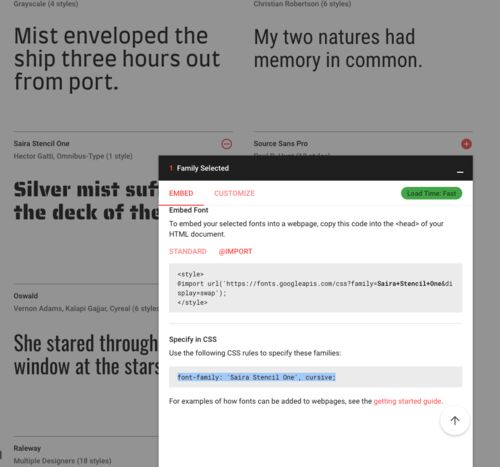 前回の記事の流れで、今度はGoogle fonts反映の方法もついでに記述しておきます。 まずは使いたいフォントを選び、@importとSpecify CSSのfont-familyを取得してきましょう。 あとはApp.vueに以下のように記述。 <template> <div id="app"> </div> </template> <script> //省略 </script> <style> @import "./css/styles.css";…
